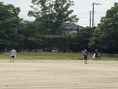 ↓ 本日の学校。校庭でも、蜜を避けながら運動する様子が見られます。