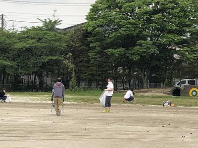 ↓ 飼育ボランティアの保護者の方が、ウサギの小屋の清掃をおこなってくださっています。学校再開したばかりで