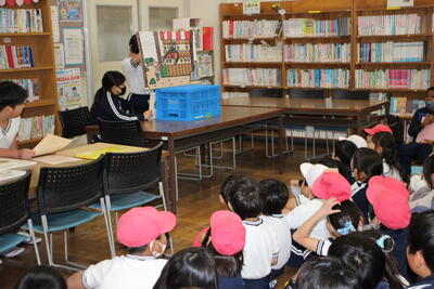 昼休みに、図書室で図書委員さんによる絵本の読み聞かせが行われました。