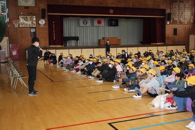 雨天のため、体育館で実施しました。