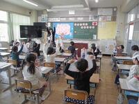 2年生が初めて英語の学習を行いました。1年生の時の学習を思いだしながら、「英語でジャンケン」をして楽しみました。