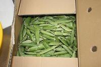 箱の中には、たくさんのグリンピース。グループごとに配られた後は、