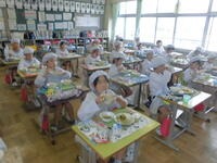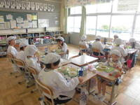 同じ9月生まれのお友達と一緒にランチルームで給食委員会のみなさんからを受けながら特別な給食を食べました。