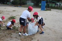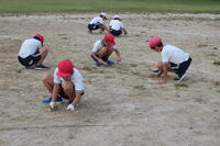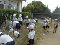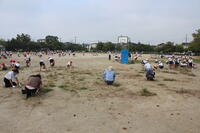 校庭に生えた雑草をみんなで抜きました。