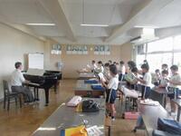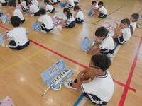 今日は1年生が、「鍵盤ハーモニカ講習会」を実施しました。
