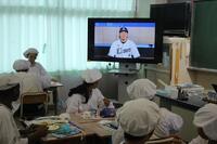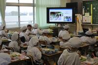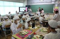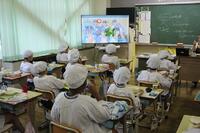 給食の時間には、市内の栄養士の皆さんが作成した動画を視聴しながら食べました。選手からのメッセージもありました。