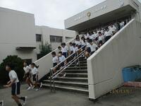 不審者確保の放送後、全員が校庭に避難しました。