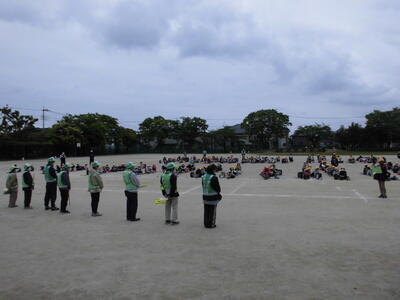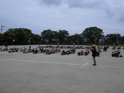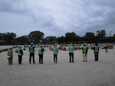 本日は、一斉下校です。日頃から、児童の登下校などの安全を見守っていただいている交通安全ボランティアの皆さまにご来校いただき、子供たちから「お願いします」の会がありました。