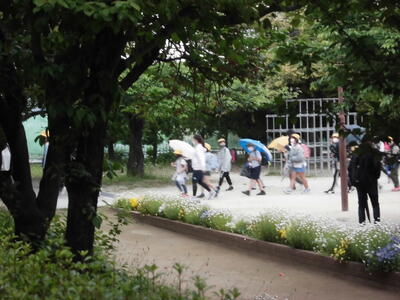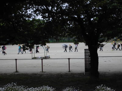 ( ↓ 子供たちが班ごとに下校していきます。)