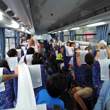 バスレク③ 投稿日時 : 2017/07/23 小渕小 カテゴリ: 最後のトイレ休憩も終わり、 バスレク再開です 「お腹がすいた~」との つぶやきが聞こえます いつもより早起きしてますが、 元気いっぱいです この元気できっと雨雲を 振り払ってくれるでしょう