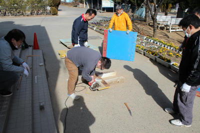 26日(土)、おやじの会のメンバーの皆さんに、渡り廊下の段差を埋めるスロープを制作していただきました。助かります、ありがとうございました。