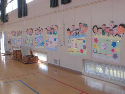 ( ↓ 二年生が、壁の飾りつけをきれいにおこなってくれました。)