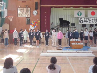 6年生が退場しました。コロナ禍でも、各学年が工夫して、子供たちの手作りの会が成功して、卒業生にとっても在校生にとっても思い出となる会になりました。