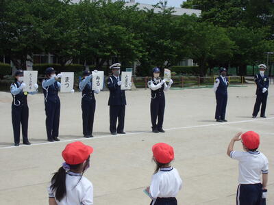 交通安全教室 投稿日時 : 2021/05/12 小渕小学校管理者 カテゴリ: 本日は、学校外から講師の方をお招きして、1~3年生の交通安全教室です。 春日部警察署と春日部市役所の方、交通指導員さん・交通安全ボランティアさんをお招きして、子供たちに交通安全について教えていただきました。 (写真は一年生の交通安全教室の様子です。)