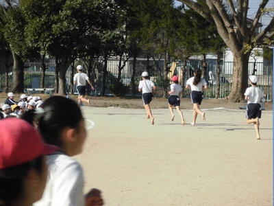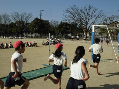 ( ↓ 今度は、6年生が見守る中を、1~5年生が走ります。6年生の前で見せられる最後の走りです。)