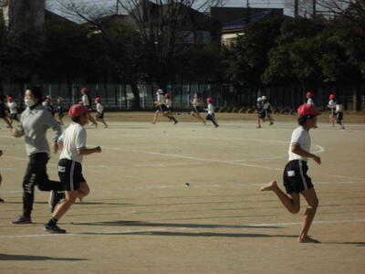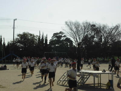 ( ↓ 走り終わっていた6年生も下級生と一緒に走り出します。このメンバーでの最後の走りです。)