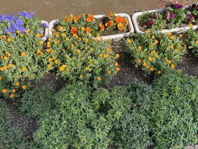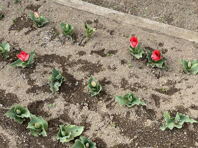 今日は、土曜日で学校休みです。学校の花壇では、花がきれいに咲いています。