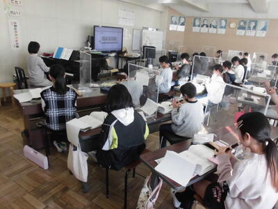 音楽でリコーダーの練習に取り組んでいます。指を上手に運んで、きれいな音色を出しています。