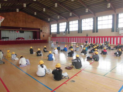 ( ↓ すべての作業を終えて体育館に集まりました。)