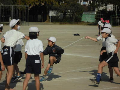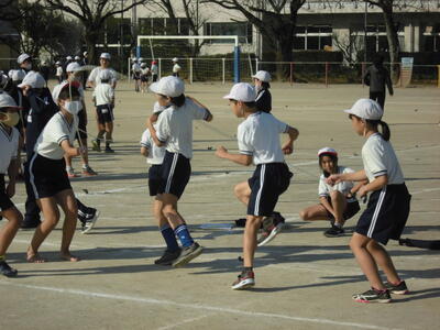 本日の昼は縦割り活動 投稿日時 : 2020/11/12 編集長 カテゴリ: 本日の昼は、「なかよし集会(異年齢による縦割り活動)」の時間でした。今日は、各グループごとに縄跳びをして楽しみました。どのグループも、上級生が下級生のお世話をしたり、縄跳びの方法やコツを教えてあげたりしながら活動しました。どの学年の子供たちも、笑顔で活動していました。