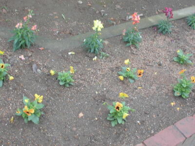 学校の正門前の花壇の花が、植え変わりました。