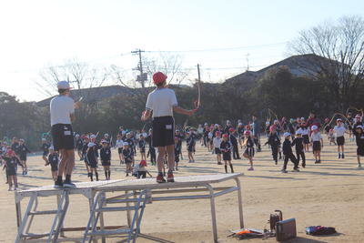 1月10日(金)体育朝会 投稿日時 : 2020/01/10 編集長 カテゴリ: 今年初めての業前活動は体育朝会です。 ラジオ体操の後、短縄跳びを行いました。運動委員会の児童が手本となって跳び方の確認を行い、その後、音楽に合わせて跳び続けました。