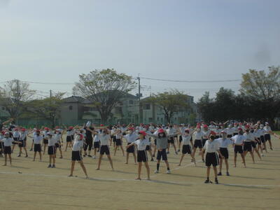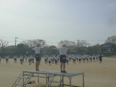 今日の朝は、今年最初の体育朝会でした。全体で、集団行動について確認しました。