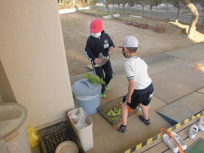 朝から、ウサギ当番の一年生が元気に活動しています。二学期に二年生から引き継いで、今ではすっかり段取りも身について、テキパキとエサやりや小屋の掃除に取り組んでくれています。