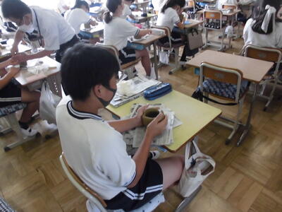 本日、6年生は外部から講師の方を招いて陶芸教室をおこないました。