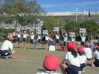 さわやかな朝です。今朝は運動会全体練習を行いました。入場から開会式、および閉会式の流れを確認しました。入場は小渕っ子金管バンドの生演奏です。当日の演奏も楽しみですね。開会式では優勝杯返還などを行いました。白組も赤組も団長の動きがきびきびしていて、頼もしさを感じます。最後に運動会のスローガンが発表されました。今年度のスローガンは「燃えて輝け小渕っ子 仲間とともに走りぬけ」です。各学級で考え、それらを代表委員の児童がまとめました。運動会は仲間とともに協力して取り組むことも大切です。その思いを胸に最後まで走りぬけてほしいと思います。