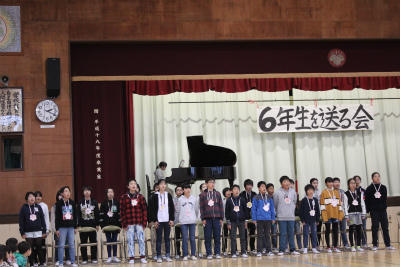 送る側の1年生から5年生は、この日のために練習してきたそれぞれの合唱や演技を感謝の気持ちと共に披露しました。 6年生からも、合唱とメッセージが送られました。双方の気持ちがこもった、すばらしい「送る会」でした。