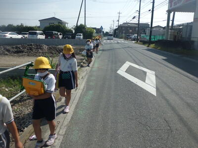 3年生が「自分いっぱい」(総合的な学習の時間)の学習で、学校周りの通学路などの危険な場所の点検に出かけました。自分たちで、身近な地域の危険な箇所を把握して、安全な生活を考える学習です。