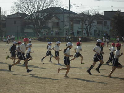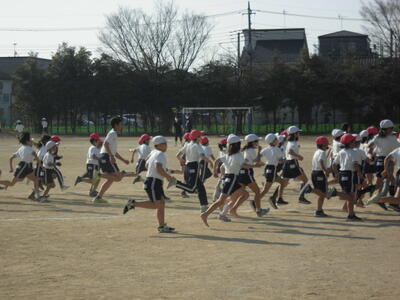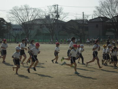( ↓ 走り終えた6年生も加わって走る姿が見られます。)