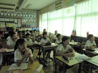 ( ↓ 本日、5年生の教室では、保健の先生による「歯みがき教室」の授業がおこなわれました。映像などで確認しながら、実際に歯みがきをしてみました。)