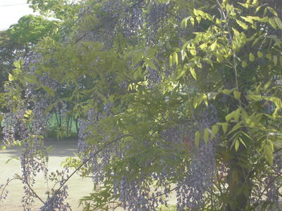 藤の花の季節 投稿日時 : 2022/05/01 編集長 カテゴリ: 5月になりました。今日は日曜日で学校はお休みです。 春日部市の花・藤の花が咲く季節となりました。学校でも、藤棚や築山の近くに藤が咲き始めました。 ※きれいな藤の花には、ハチ(クマンバチ)がよってきます。藤の近くには「ハチにちゅうい」の看板を立てていますが、お気をつけ下さい。