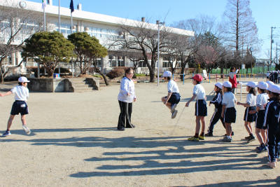 本日朝、全校で長縄跳び大会を実施しました。