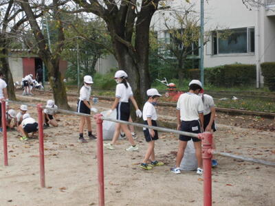 朝の愛校活動 投稿日時 : 2020/10/14 編集長 カテゴリ: 今日の朝は、愛校活動です。子供たちが自身の手で学校の美化などを進めます。 今回は、1~6年生のまでの異年齢集団のたてわり班にわかれて、班ごとに上級生のリーダーシップのもと、校庭で美化活動をおこないました。