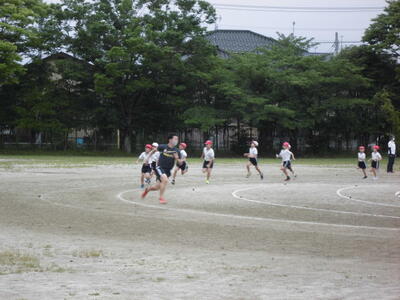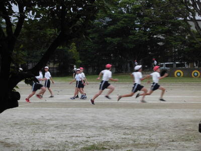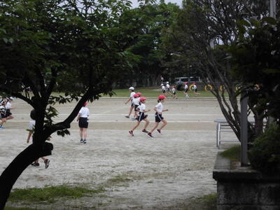 ( ↓ 登校して、準備ができた磁土が校庭に出て自主的に走り始めています。)