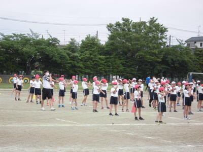 朝、登校した子供たちが自主的に外で運動する「一運動(いちうんどう)」が始まりました。臨時休校や分散登校があり、活動を控えていましたが、ウイルス感染拡大防止や熱中症予防にも気をつけ、今年度の一運動が本日より始まりました。本来は、子供たちは、この運動もはだしておこなうのが昨年までの小渕小でしたが、今の時期は走ったあとの密や足ふきタオルの共用を避けるため運動靴をはいて活動します。