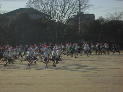 今日の朝は、今学期最後のさわやかタイム、全校で運動の時間です。空気も冷たくなってきた校庭を、子供たちが元気に駆けています。