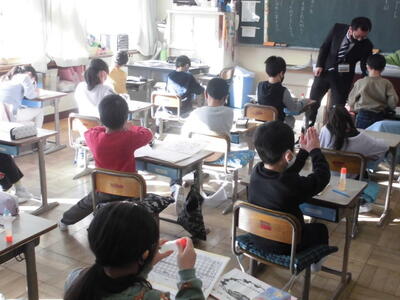 ( ↓ 三学期の始業式。感染症対策のため、本日の始業式は放送でおこないました。)