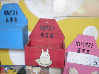 ( ↓ 校長室前の俳句ポスト。子供たちがつくった俳句が投函されています。)
