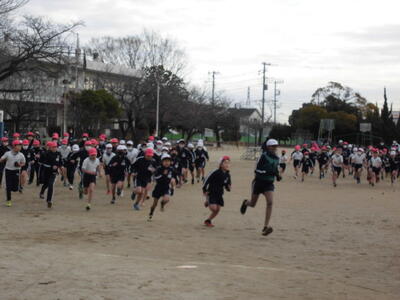 今日の朝は、さわやかタイム。全校で運動の時間、校庭を走ります。