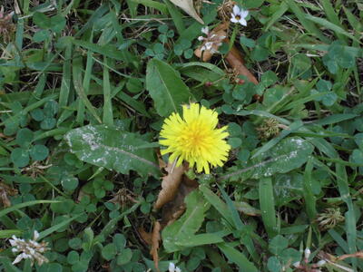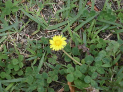( ↓ 校庭の片隅に咲いている、春のなごりの花。)