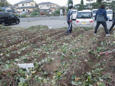 畑のサツマイモ 投稿日時 : 2020/11/01 小渕小学校管理者 カテゴリ: 一学期に1・2・3年生の子供たちが植えたサツマイモの苗が順調に育ち、収穫の時期となりました。おとといの金→曜日の放課後、栽培ボランティアの方と先生たちで、畑でサツマイモののツル切りをおこないました。 子供たちが収穫するのが楽しみです。