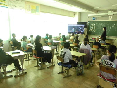 本日は二学期の終業式です。感染症対策のため、体育館には集まらずに、各教室をリモートでつないでおこないました。