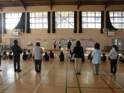 今日の朝は、6年生が先生たちを体育館に招き、今までの御礼の言葉を伝える「感謝の会」がありました。