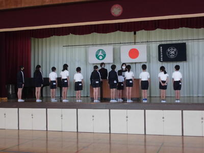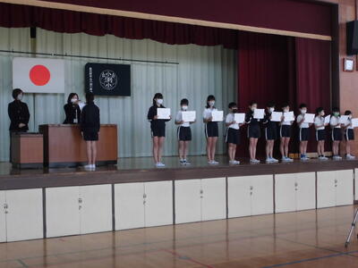 今日の朝は体育朝会、持久走関係の表彰がありました。感染症対策のため、体育館と各教室をリモートでつないでおこないました。