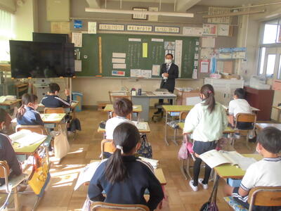 ( ↓ 3年生の道徳の授業。オリンピックの金メダリストで陸上選手のがんばりから考えたことを発表したりワークシートにまとめたりしています。)
