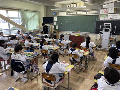 今学期の給食は、本日で終了です。今年度はコロナ禍にあって、給食もグループを作ったりせず、各自で前を向いて、会話しないで食べます。それでも、子供たちは給食の時間を楽しみにしています。